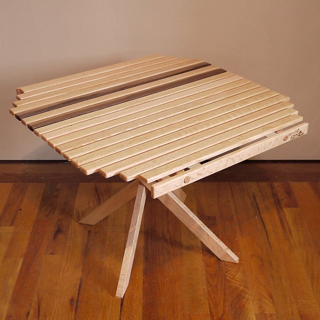 ロールトップ天板の折りたたみテーブルです。天板のサイズは二人用サイズとしても十分、